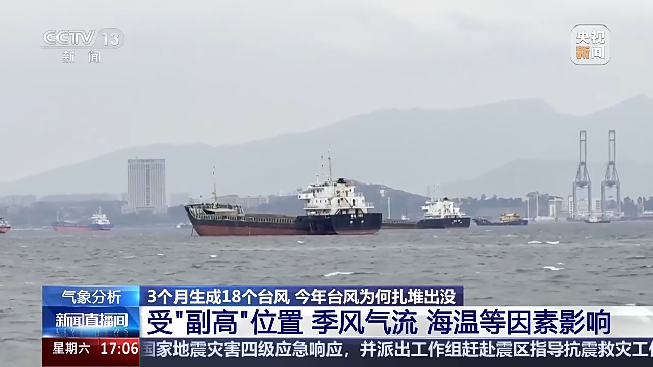 为何台风扎堆出现?专家介绍,这种情况主要受副热带高压位置、季风气流、海温等方面的因素影响。今年7月和9月,